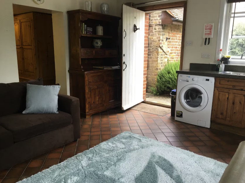 The charming and characterful cottage has a lovely, bright, triple-aspect kitchen/sitting room/dining room. The kitchen is fully equipped with a range of appliances including granite work surfaces. The sitting room has a new flat screen 32’’ smart TV. The bedroom has a king bed and was the original former pump room. The en suite shower room has a large walk-in shower. Outsider, there is a seating area for al fresco dining.