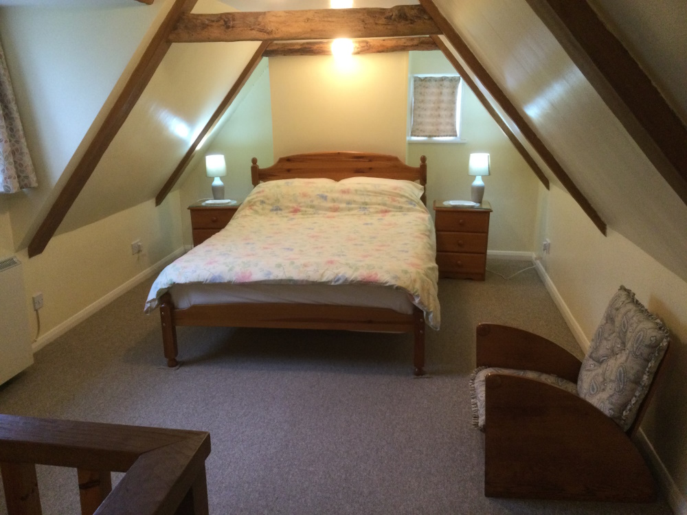 The Farmhouse comfortably accommodates up to five guests, offering a perfect blend of space and comfort for families or small groups. The main family bedroom features a king-size bed, vanity unit, and en-suite toilet, with an adjoining room containing a single bed, ideal for a child or additional guest. Upstairs in the attic, you'll find a cosy double bedroom complete with its own lounge area and Freeview TV, creating a private retreat within the home.