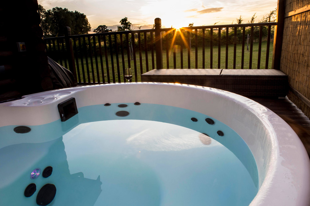 The bedroom and sitting room both have double doors that lead on to the south west facing veranda. There you‘ll find your own private dining area and luxurious private hot tub for you to unwind from the stresses of everyday life and watch the sunset over the beautiful countryside.