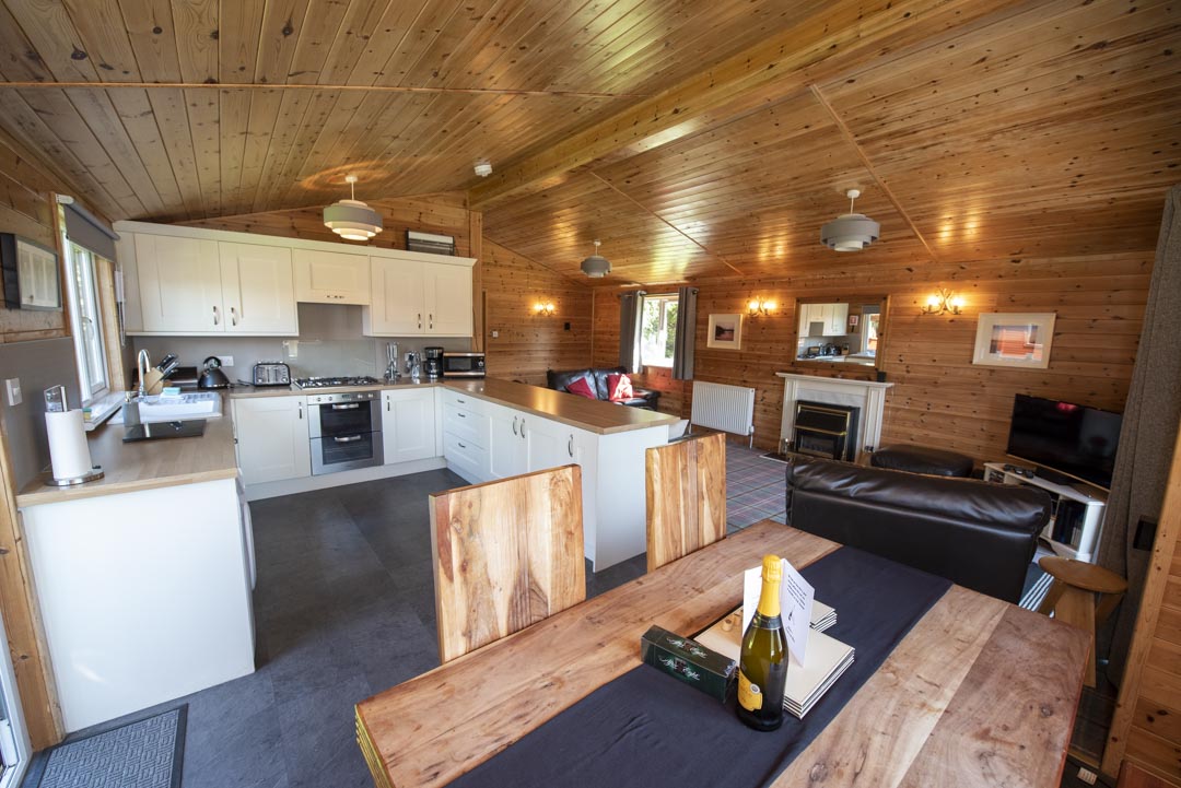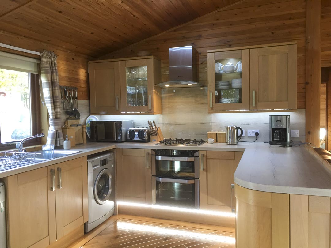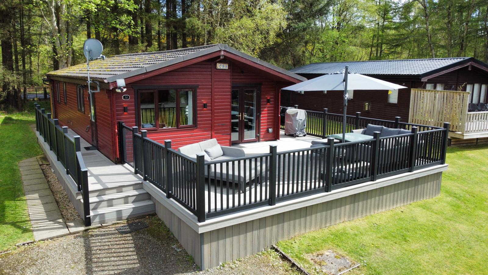 Loch Lomond Chalet has an open-plan kitchen, dining and living area, one double bedroom with ensuite, two twin bedrooms and a family bathroom. The lounge includes a Smart TV with Sky Freeview, DVD player, Sonos sound bar, gas fire, gas central heating and leather seating for up to six. The well-equipped kitchen offers a fridge freezer, dishwasher, washing machine, hob, double oven, microwave and coffee machine, with a solid oak dining table seating six comfortably. The master bedroom has a double bed, fitted wardrobes, a Smart TV and an ensuite with shower, sink and WC, while both twin rooms have full-size single beds and fitted wardrobes, one with board games. The bathroom features a Jacuzzi spa bath with handheld shower, vanity unit and WC, plus a tumble dryer in a cupboard. Outside, there is parking for up to four cars and an EV charger for guests’ use. STL Licence Number : ST00015F EPC Rating : C.