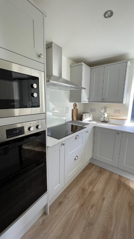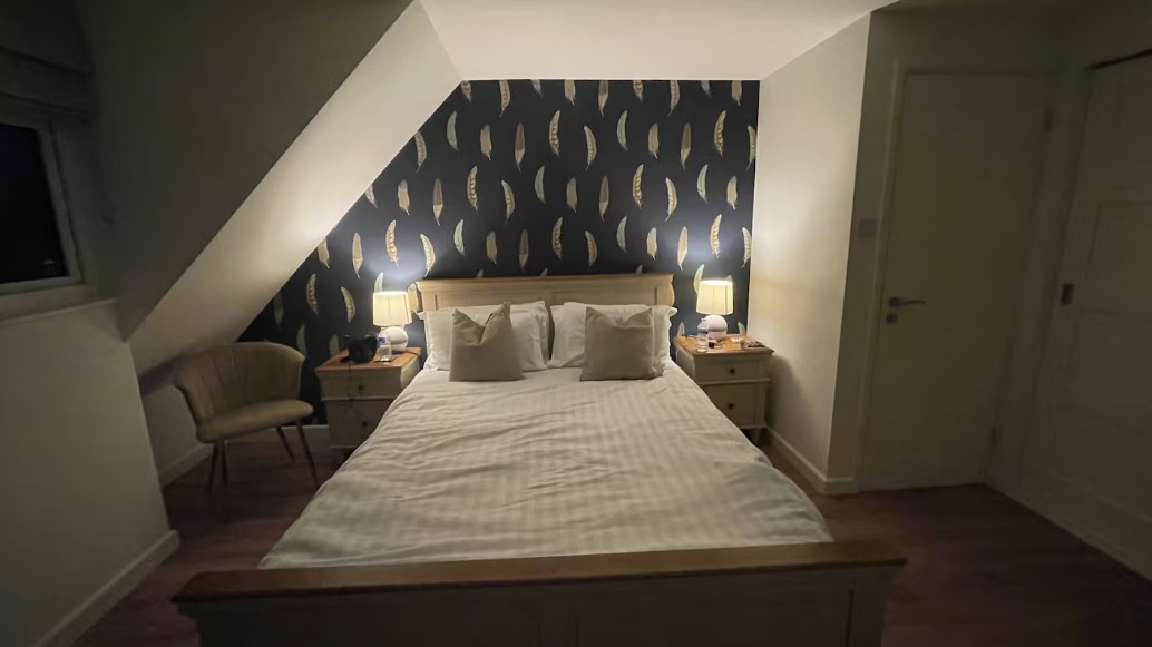 Inside, the property is light and airy with a welcoming lounge and dining area. The kitchen is fully equipped with a dishwasher, washing machine, electric cooker with oven and grill, kettle, toaster and undercounter fridge. On the ground floor, there is a bedroom and a separate bathroom with a shower. Upstairs, the master bedroom features a king-size bed with a Simba mattress and an ensuite toilet, while the second bedroom has two single beds and an ensuite shower room. Two hairdryers are provided, one in each upstairs bedroom.