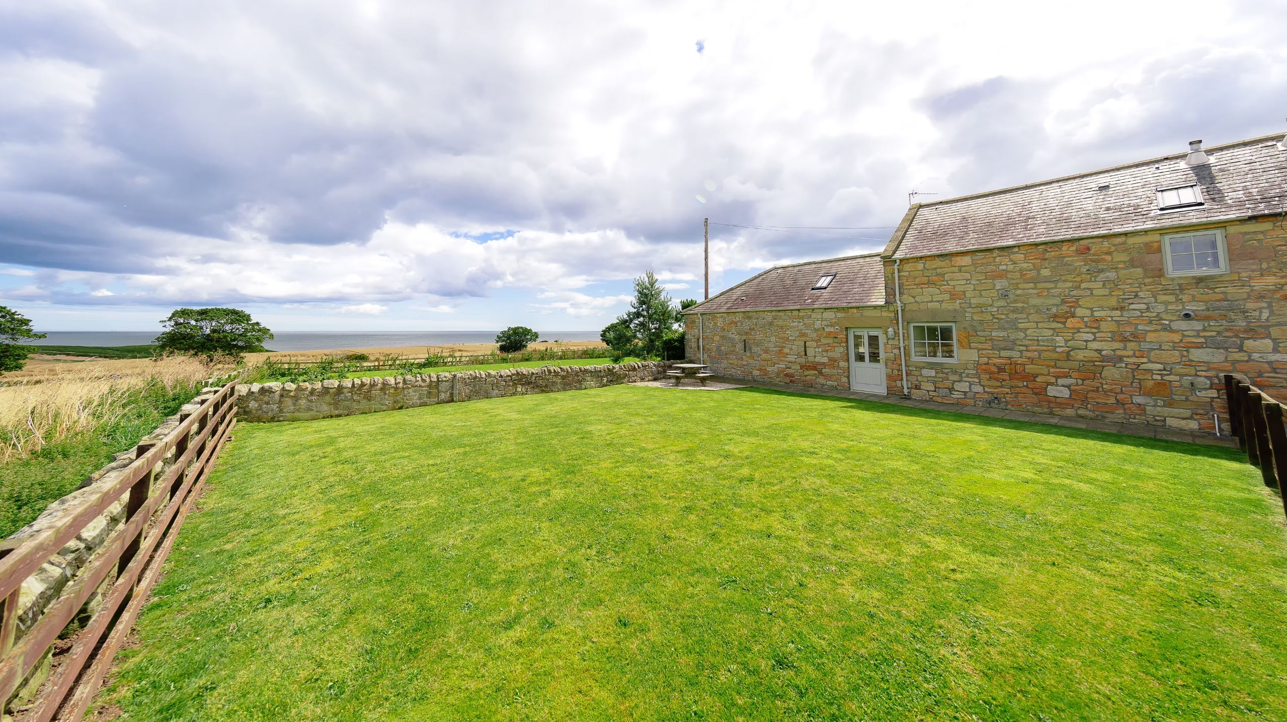At the rear of the cottage, the fully enclosed lawned garden offers views across the sea towards Alnmouth in the distance and is perfect for alfresco dining. Lyme Cottage is set in an area of Outstanding Natural Beauty between Alnmouth and Warkworth, with private access to the beautiful Killiecrankie Beach just a short walk down the field behind the cottage.