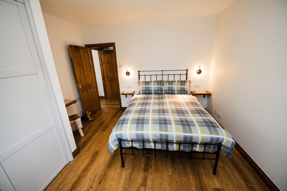 Also thoughtfully converted from old farm buildings, offers spacious and high-standard accommodation. On entering, you are greeted by a large modern kitchen with a well-equipped dining area and a 32″ TV. Stairs lead to the first floor and a separate lounge, while a large picture window at the front provides lovely open views and a door at the rear leads to the garden. The cottage has a double bedroom with a double bed and space for a cot if required, complete with a vanity sink and shaver point, and a twin bedroom, also with a vanity sink and shaver point. A separate bathroom features a three-piece suite with a bath. Outside there is a secure lawned garden and patio.