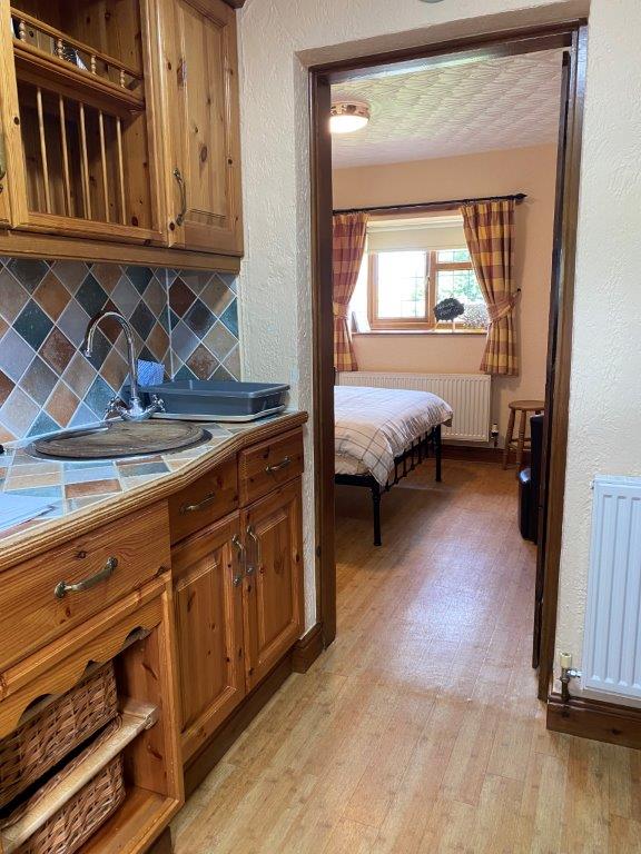Attached to the owner’s farmhouse, this immaculate bijou cottage offers compact yet cosy accommodation of a very high standard, making it ideal for a single person or a couple. The ground-floor cottage features a carefully furnished and coordinated interior, beginning with a small but well-equipped galley kitchen and dining area with attractive pine units. The sitting area includes two comfortable armchairs with matching footstools, creating a welcoming space to relax. The combined double bedroom and sitting area provides both comfort and style, while the separate bathroom is beautifully fitted with a three-piece suite, shower over the bath and a shaver point.