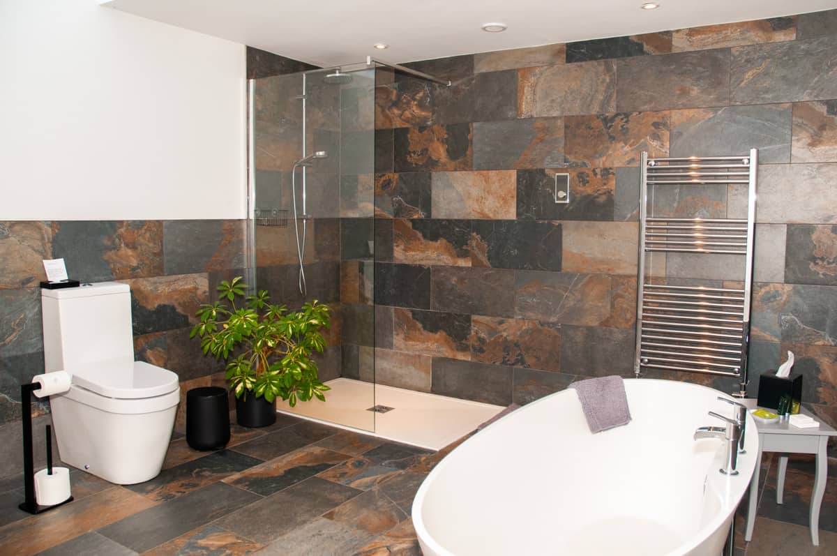 There are two generously sized bedrooms, each with a king-size bed dressed in crisp Egyptian cotton bedding, providing a luxurious and restful night’s sleep. The bedrooms share a stunning bathroom, thoughtfully designed with underfloor heating, a waterfall shower and a large separate tub, perfect for soaking tired limbs after a day of adventure.