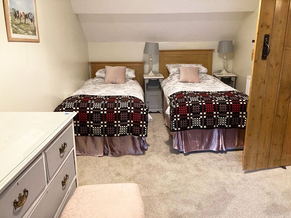 Upstairs, the accommodation includes three bedrooms: one double room, one spacious twin room and a large master bedroom with a double bed. The family bathroom is generously sized and features a bath, power shower, sink and WC. Well-behaved dogs are welcome for a fee of £20 each (maximum of two), but please check with the owner in advance, as not all cottages on the property allow pets.