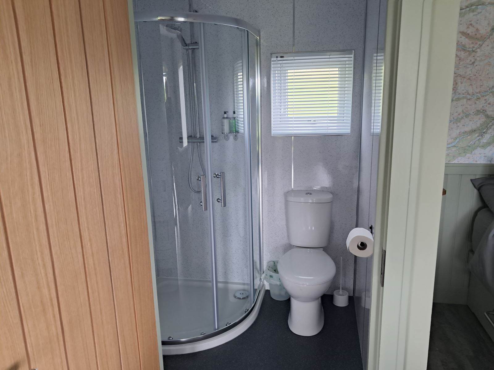 Each cabin is equipped with central heating, which can be adjusted using the control unit on the wall beneath the TV. Hot water is available on demand whenever the taps are turned on, ensuring comfort throughout your stay.