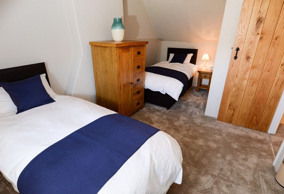 In total, there are 4 bedrooms. The master bedroom comes with a super king-size bed which can be made into twin beds on request. A twin room is accessed through the master bedroom and a second master bedroom with a super king bed can be made into twins on request. The bunk room comes with two adult-sized bunk beds.