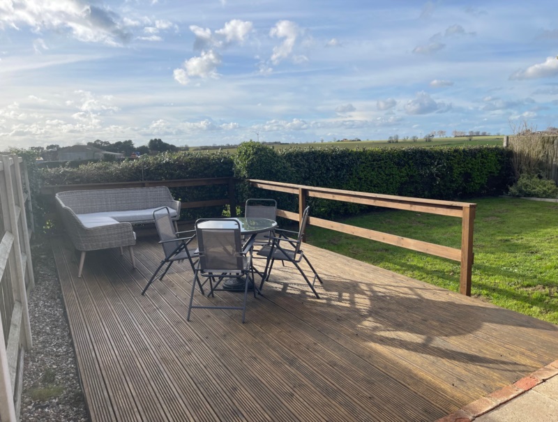 Outside is an enclosed garden with seating, offering a lovely spot for a coffee whilst enjoying the field views.
