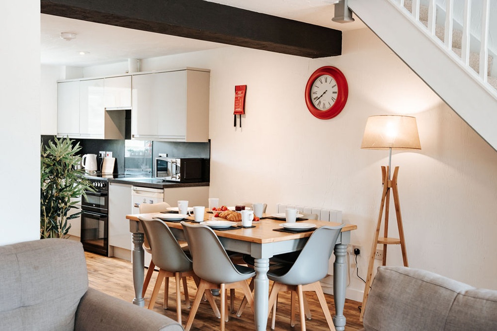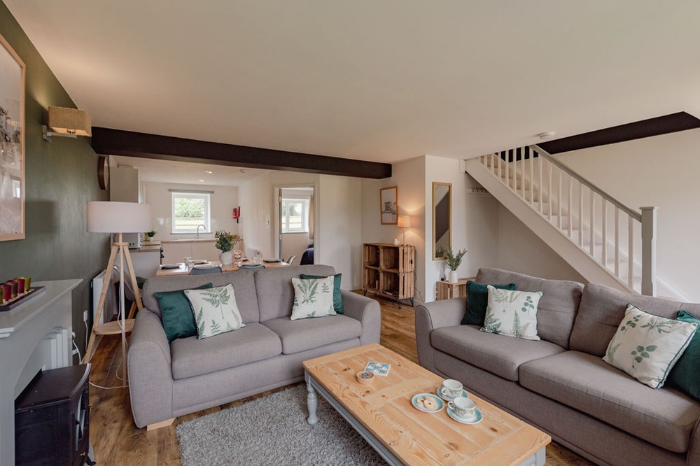 The Hayloft - Perfect for a party of 4, this cottage boasts two bedrooms. The open-plan lounge, dining and kitchen area, complete with TV and WiFi access, creates a welcoming ambiance. Downstairs, guests will find an ensuite shower and WC, while upstairs, an ensuite bathroom awaits.