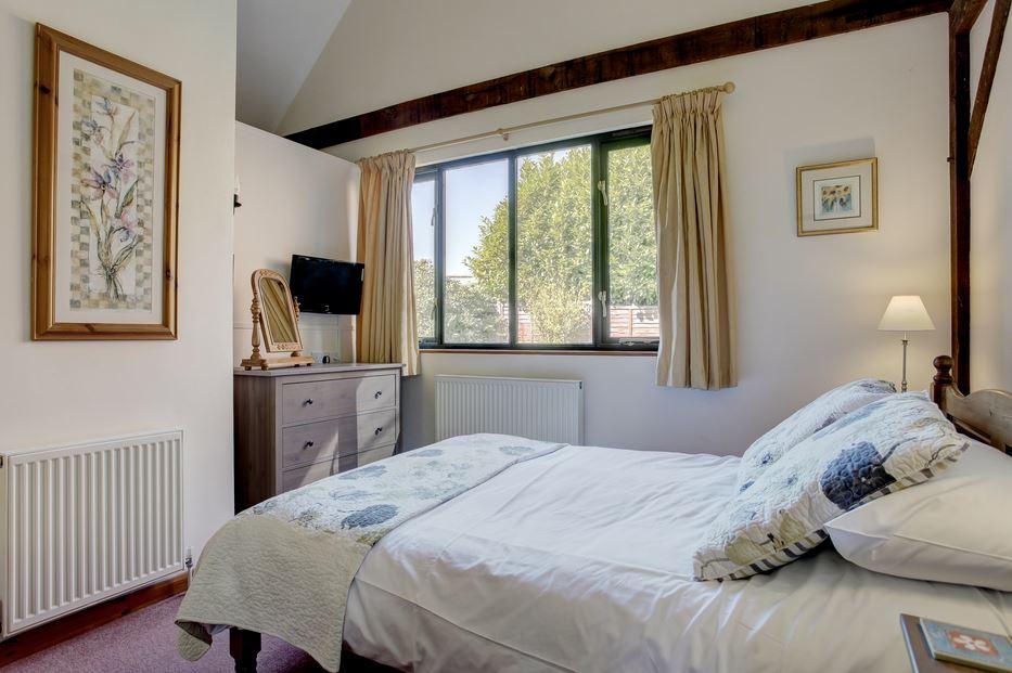 This beautifully converted five-star hay barn offers a peaceful retreat for up to four guests, set privately away from the other cottages. With its own enclosed garden and a private hot tub, it’s the perfect spot to unwind in complete seclusion. Characterful original features blend effortlessly with stylish modern furnishings, creating a warm, comfortable space designed for relaxation. Inside, the spacious and light-filled living area includes a wood burner, ideal for cosy evenings indoors, while outside you can soak up the stunning countryside views and clear, star-filled Suffolk skies.