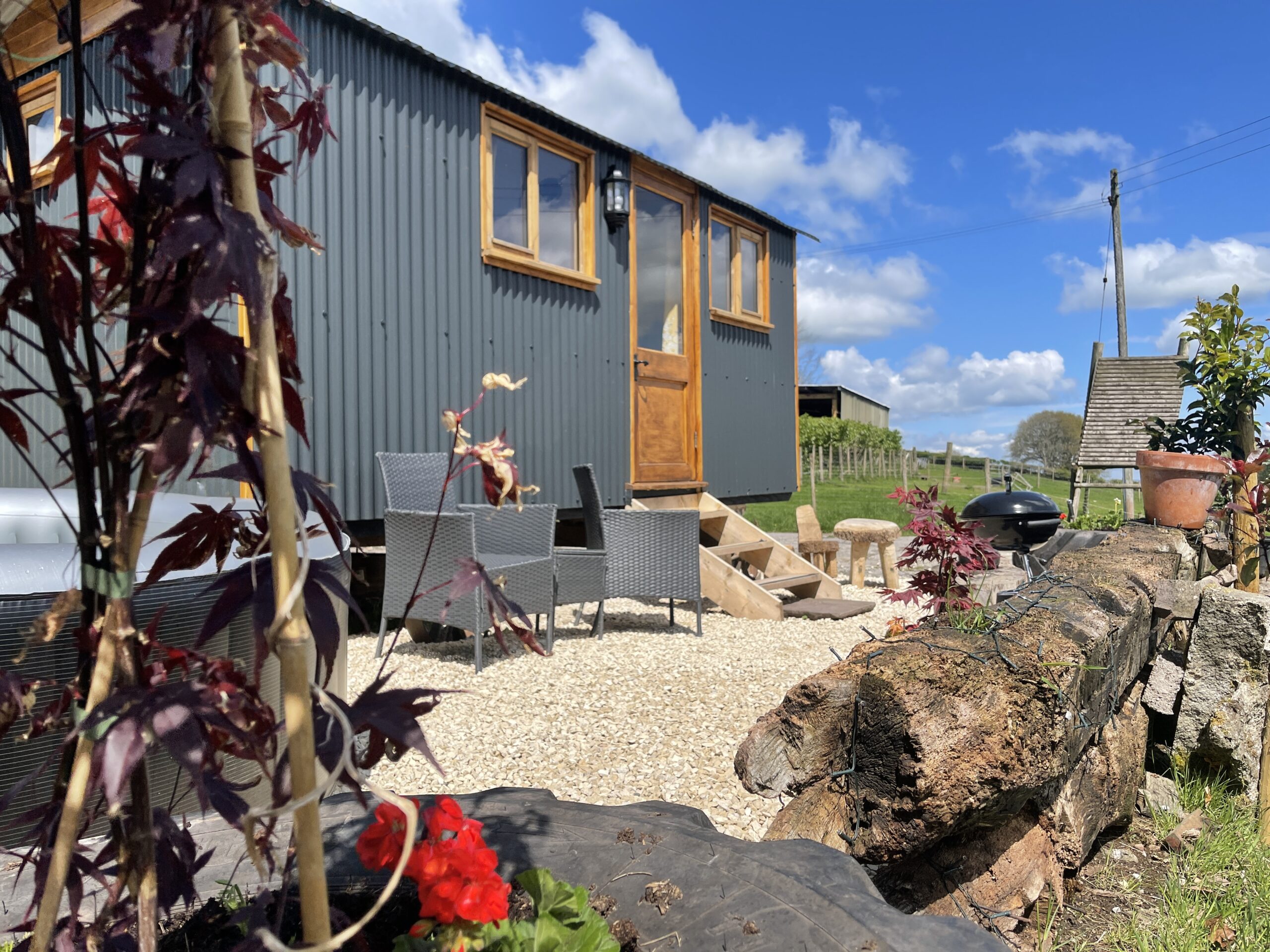 This shepherd's hut offers a comfortable and well-designed space with a two-bench seating area that converts into a fold-down double bed, a dining area for two and a stylish shower room. The kitchen is fully equipped with a microwave grill, ceramic hob, air fryer, toaster, kettle, fridge freezer and all the necessary dishes and crockery for a convenient stay. Outside, guests can unwind in the hot tub, enjoy the fire pit and BBQ and relax in the seating area while taking in the beautiful views across the Black Mountains.