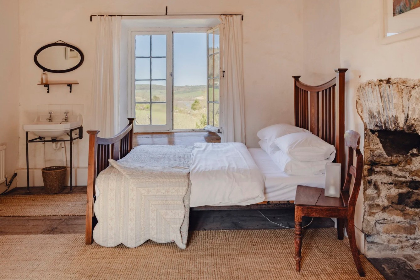 Upstairs, all bedrooms are fitted with their own sinks and enjoy lovely views over the estuary and surrounding fields. There are three double bedrooms and three twin bedrooms, one of which includes an additional pull-out bed if required. Two camp beds are also available for children, offering flexibility for family sleeping arrangements. The bathroom includes a deep bath with a hand-held shower, a toilet and a washbasin, and towels are provided for guests.