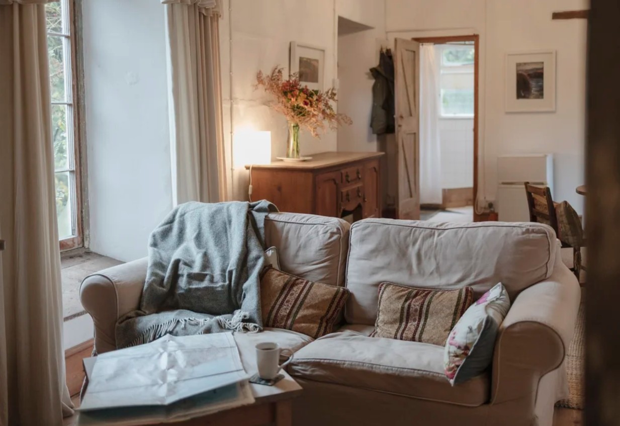 From the living space there are views across the large courtyard garden, which can be accessed when the property is rented together with Plas-Y-Berllan.