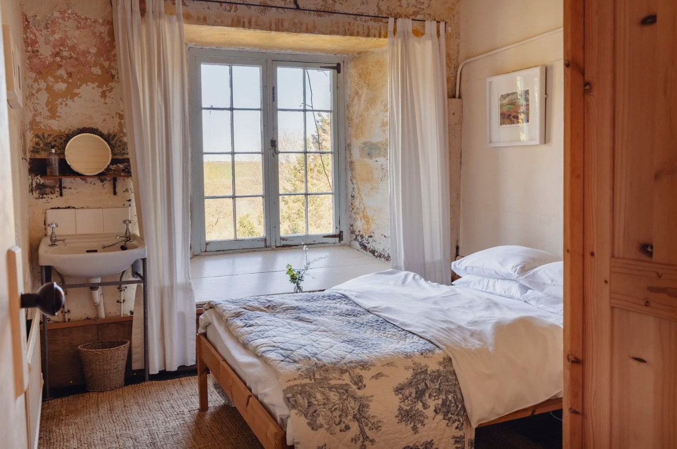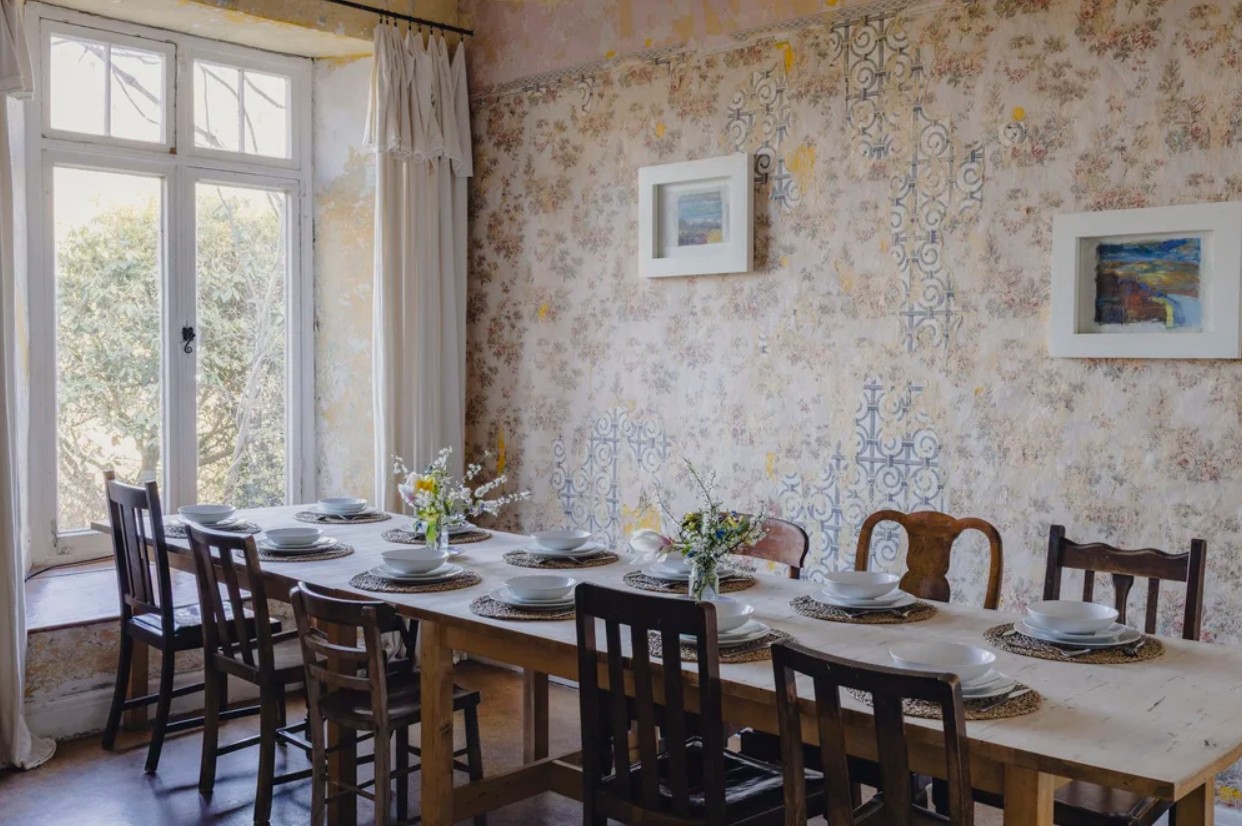 This 19th-century workhouse has been sympathetically renovated to retain its original features and historic character, while also creating a comfortable and welcoming place to stay. The kitchen is well equipped with a gas and electric range cooker, dishwasher, large fridge freezer and microwave, along with ample pots, pans, crockery and cutlery to cater for larger groups. The dining room features a large table seating up to fourteen people, a coal-fired Rayburn that heats the water and upstairs radiators, and a television with Freeview channels. The lounge is furnished with a large comfortable sofa and additional seating, along with a wood-burning stove for cooler evenings. A utility room provides a washing machine, plenty of space for coats and outdoor gear and access to a downstairs toilet and shower room.