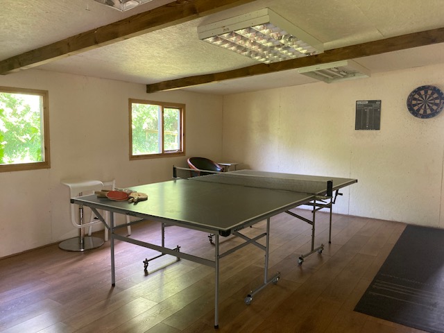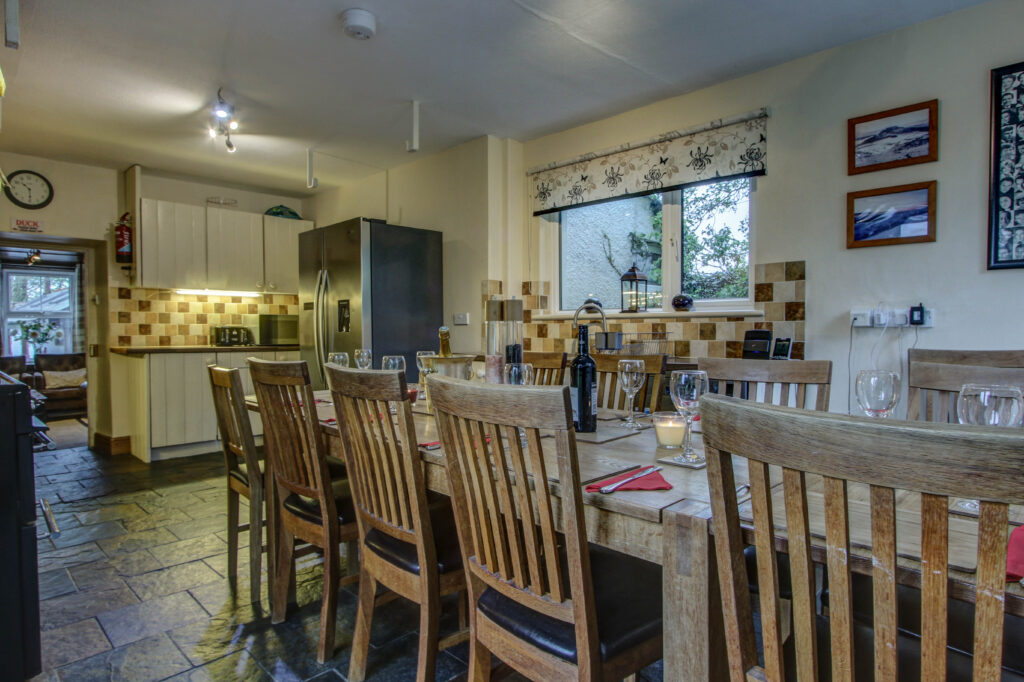 This spacious farmhouse is perfect for a large group. The large living room is brimming with character and comes with exposed beams, natural stone walls and two sittings areas each with a woodburner. Facilities include NOW TV and a DVD player. A well-equipped kitchen comes with a range of excellent appliances including an American fridge freezer, dishwasher, range cooker with two ovens and a microwave oven. A large oak table seats up to 10 people and enjoys views of the garden and paddocks. Patio doors open onto to the garden where you will find a range of garden furniture and a log cabin games room with a table tennis table, dartboard, TV, sofa and comfortable chairs. The master bedroom has a king size bed, an A-frame beamed ceiling and a full-length picture window with stunning views; it has a separate dressing room and en suite shower room. There are two other doubles and one small double and a family bathroom with bath and shower. Downstairs there is a twin bedroom (can be converted to kingsize) and a single bedroom sharing access to a large Jack and Jill en suite shower room with walk in shower. There is also a small shower room off the utility room.