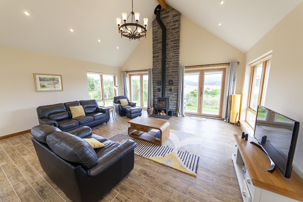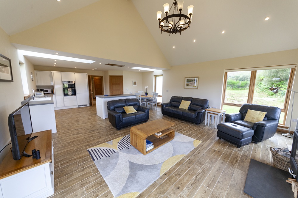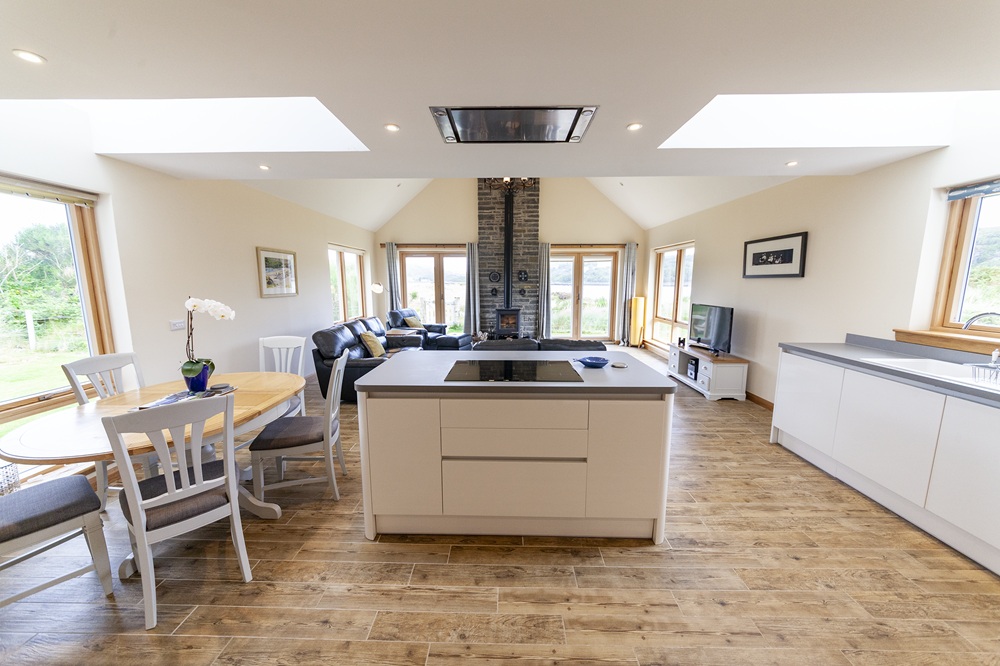 Inside there is an open plan living room/kitchen including a toasty wood burner and vaulted ceilings. Unwind in the living room which has patio doors that open onto the decking area. All the rooms come with underfloor heating.