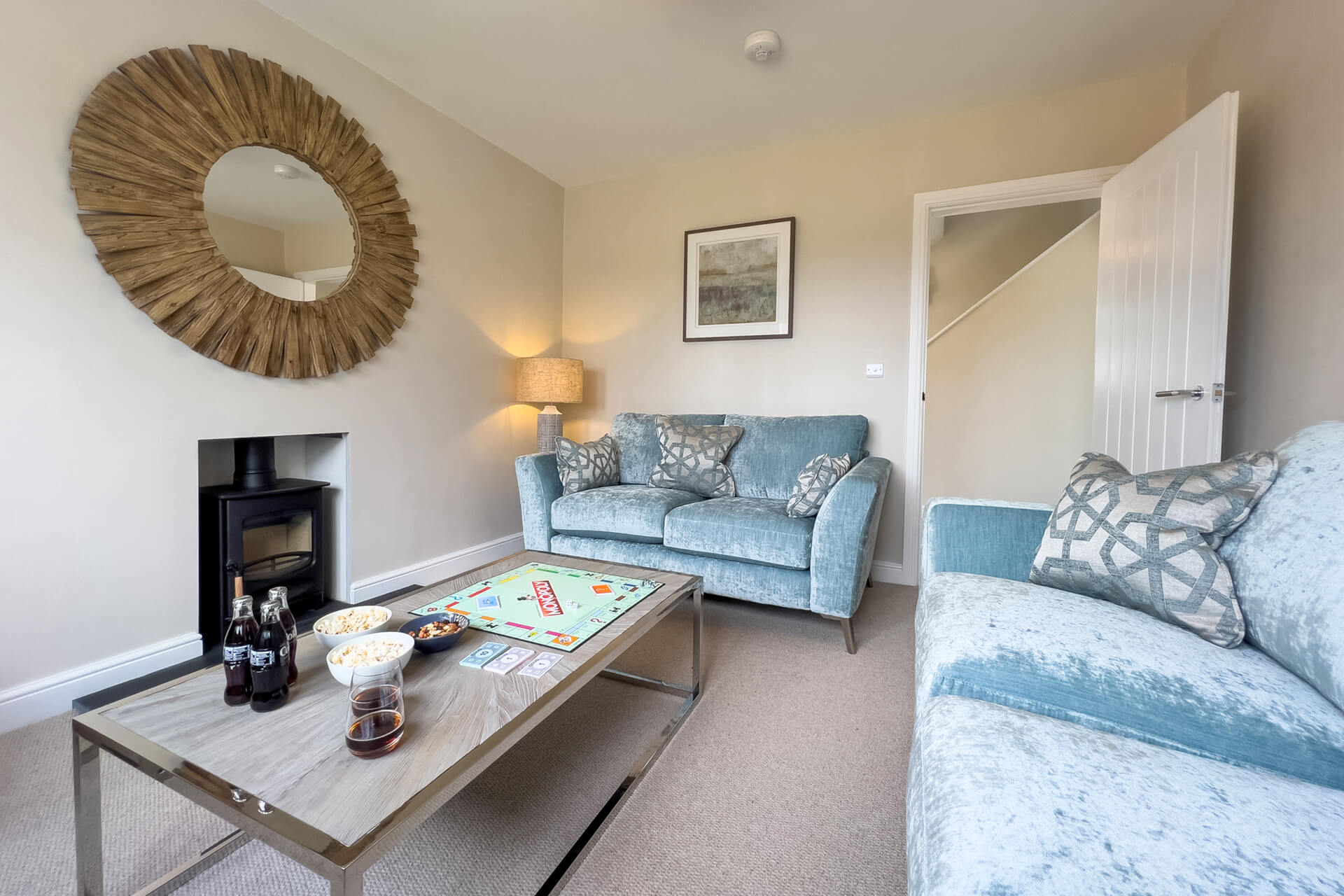 The four-bedroom house offers a sociable ground floor layout with a spacious, well-equipped kitchen that flows into a stylish dining and lounge area before opening into a bright and airy conservatory. A separate, elegantly furnished sitting room with a log burner provides an additional space to unwind, ensuring there is plenty of room for family and friends to relax together or find a quieter corner.
