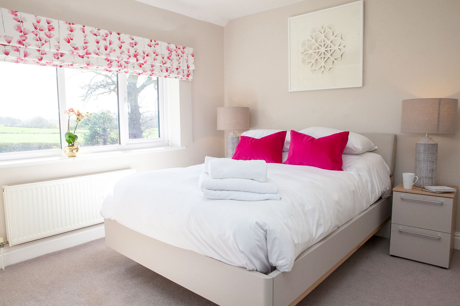 Upstairs, the staircase opens onto a cosy seating area ideal for reading or simply admiring the Shropshire views. The three well-appointed bedrooms are arranged around the family bathroom. One bedroom has a king-size bed, another a double, and the third features a zip-and-link bed that can be arranged as a super-king or as twin beds.