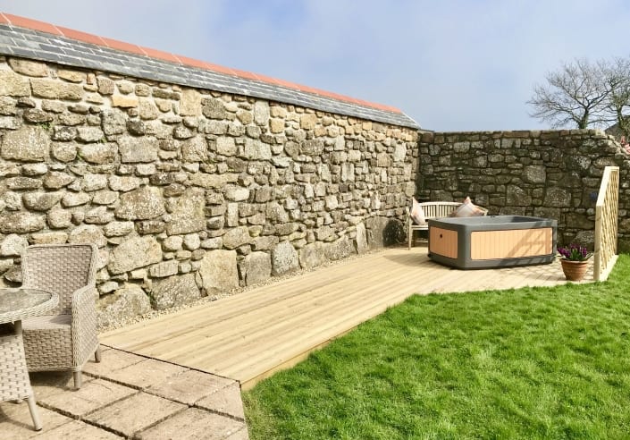 The luxury cottage is built from traditional local materials such as granite and slate and its light, open-beamed interior showcases fine craftsmanship within spacious, modern surroundings. Designed for contemporary comfort, it features a king-size bed, a luxurious bathroom and stunning open-plan living areas with a state-of-the-art kitchen, underfloor heating and double glazing. Guests can relax in the generous living and dining space or step through the patio door into a private walled garden with sun loungers, a BBQ and a hot tub tucked into a secluded corner. Evenings can be spent unwinding on the sofa with the large flat-screen TV, DVD or stereo, or cooking in the stylish Ash kitchen equipped with granite worktops, ceramic hob, split-level oven, integrated microwave, dishwasher, washing machine and fridge-freezer. The bathroom offers a large shower and a deep double-ended bath, while the bedroom provides a blissful retreat with a king-size bed, elegant furnishings and a glazed door leading to a sheltered patio ideal for summer dining. The cottage is personally cleaned and cared for to ensure the highest standards, operates a non-smoking policy and accepts only guide dogs by prior arrangement. Ample off-road parking is available within the grounds.