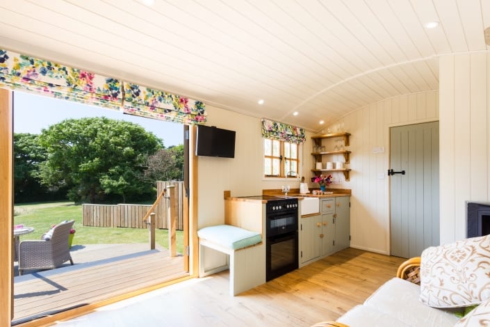 You won’t need to sacrifice any home comforts in this shepherd’s hut, which is equipped with a king-size bed that stays in place all day, underfloor heating to complement the log-burning stove, and excellent insulation to keep the space warm and inviting. A fully integrated bathroom with a large drench shower means no nighttime trips across a paddock, and double glazing enhances the sense of comfort. The hut also offers a full-sized cooker, fridge and television, providing a level of luxury no shepherd would ever have known. Positioned to capture the afternoon and evening sun at the front while still allowing you to wake to the sunrise through the bedroom window, the hut offers glimpses of the sea and the soothing sounds of birdsong, all within a peaceful and private setting. A secluded hot tub sits just behind the hut, perfectly placed for enjoying the late sun or gazing at the moon and stars. With Friday and Monday changeover days, guests can choose a seven or ten day stay or opt for a shorter three or four night break. As access involves three steps up into the cabin, it may not be suitable for those with limited mobility, who may find the Coach House bedroom suite or Boskenna Cottage more appropriate.