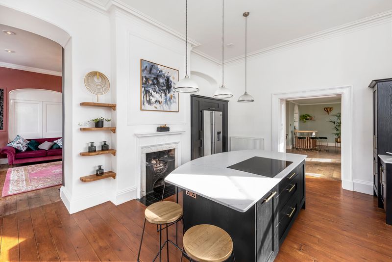 Built in 1800, the property has a rich story to tell, having once belonged to the Duke of Beaufort and the Wordsworth family. Inside, historic charm blends seamlessly with contemporary comfort. Traditional features are beautifully preserved, while modern touches enhance the experience. Bold décor adds personality throughout, and the open-plan kitchen and dining space is ideal for bringing everyone together. The spacious living room, warmed by an open fire, sets the scene for cosy evenings after a day exploring. The large, well-equipped kitchen includes everything needed to cater for a group meal, from modern appliances to wine coolers, and can easily accommodate a private chef for special occasions.