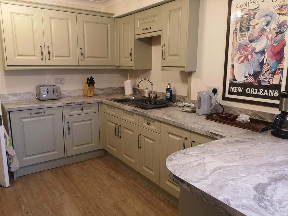 Three of the bedrooms offer king-size beds, the Gold, Grey and Pink Rooms, with the Pink Room also able to convert into a twin if needed. The fourth bedroom, the Blue Room, contains a queen-size bed. Guests have access to a large bathroom known as the Jungle Room, as well as two smaller bathrooms, Cappuccino and Little, each fitted with a shower, washbasin and toilet. A cot and high chair can be provided and bed linen and towels are included.