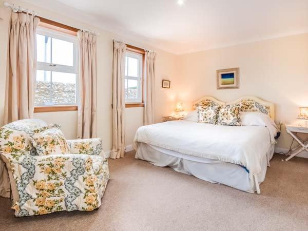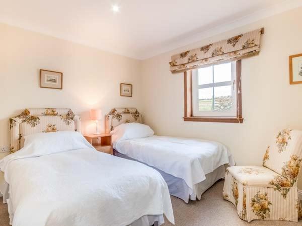 Built to a high specification, the cottage features its own water supply, double glazing throughout and underfloor electric heating, powered where possible by a nearby domestic wind turbine. Everything is arranged on one floor and the cottage sleeps six people. The master bedroom includes a 6ft double bed and an en-suite bathroom. Two additional twin bedrooms share a bathroom that can be accessed separately from each room. The bright sitting room, with three windows, is perfectly positioned to enjoy the stunning views. The modern kitchen and dining area is spacious and well-equipped with a dishwasher, large fridge, large freezer, microwave, washing machine and tumble dryer, creating a light, comfortable and practical living space.