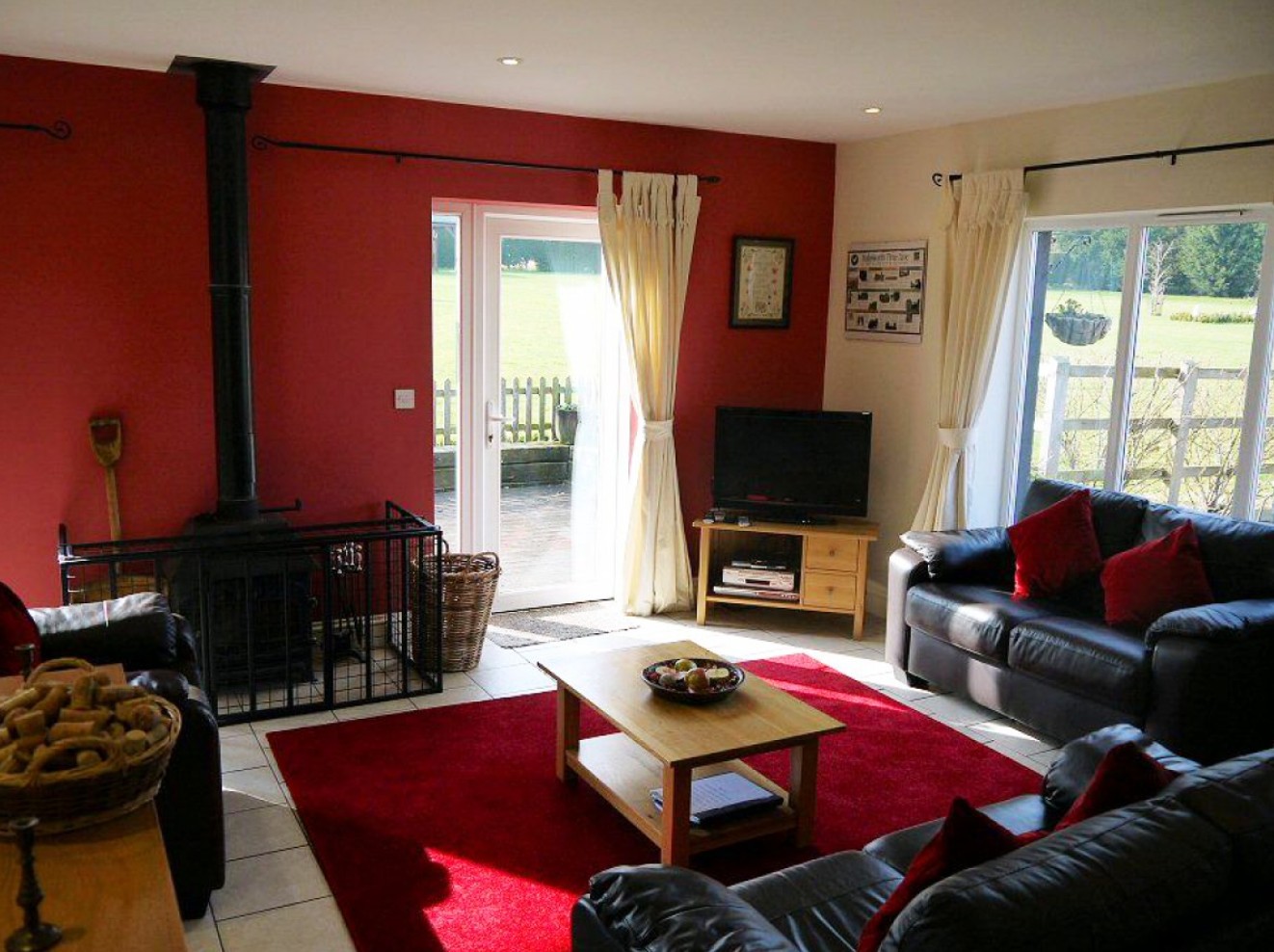 Rookyard Cottage is an eco-friendly, single-storey self-catering retreat built with a timber frame and recycled newspaper insulation and features rainwater harvesting and solar-heated water. The sitting and dining area has a vaulted timber ceiling and connects to a modern, well-equipped kitchen with a dishwasher and washing machine, while a log-burning stove is complemented by full oil-fired central heating. It offers two bedrooms, one king-size double and one twin, both with en suite bathrooms, including a fully accessible bathroom with a large walk-in shower and grab rails for disabled guests. Guests can enjoy Freesat TV with DVD, a radio and iPod dock, free Wi-Fi and interiors furnished and decorated to a high standard in a contemporary style, with easy level access throughout for wheelchair users; guests booking for disabled use are advised to check facilities against their needs. Set within the spacious grounds of Valley Farm, the cottage includes a south-facing terrace with outdoor furniture and a barbecue, as well as access to a large one-acre field ideal for games, kite flying and outdoor fun, safely tucked away from the road.