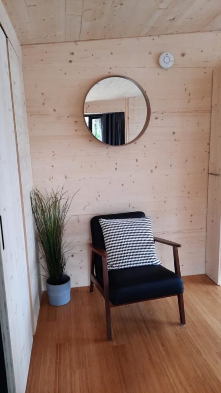 The interiors have a modern Scandi feel, with walls lined in natural wood and complemented by elegant furnishings. Innovative, sustainable materials have been used throughout to create a distinctive and beautiful finish.