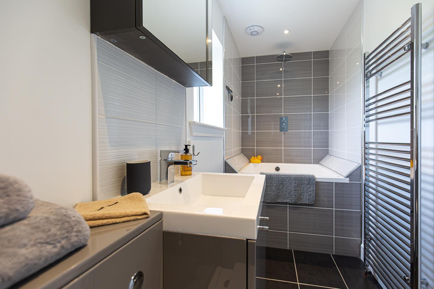 Upstairs, three generously sized bedrooms, two king rooms and one twin, are designed to feel warm and restful, helping ensure a great night’s sleep. Each bedroom benefits from its own generous en-suite bathroom, with two offering walk-in showers and one featuring a luxurious Japanese-style soaking tub large enough for two.