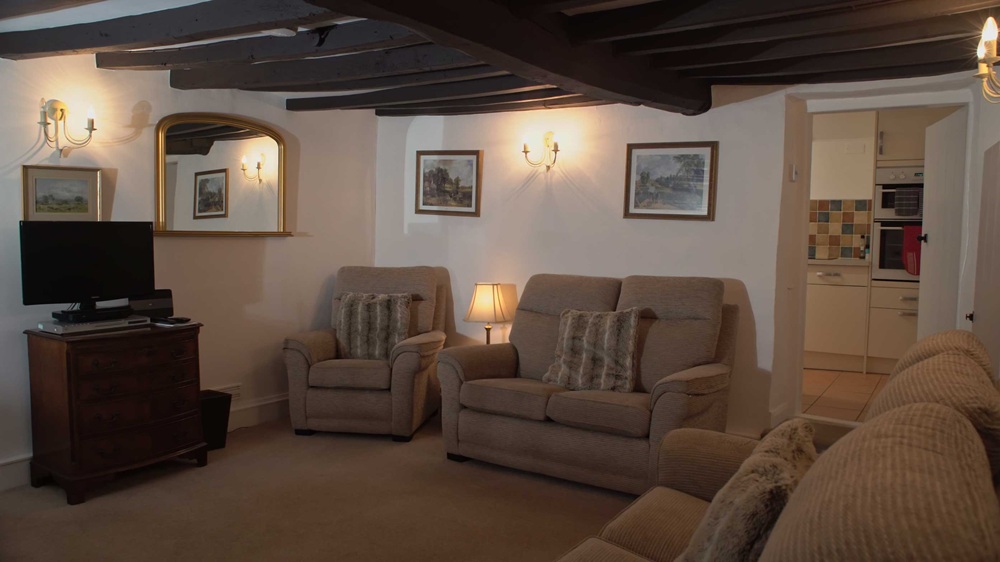 The Thatched Cottage is a charming 16th-century oak-beamed retreat, thoughtfully refurbished to a high standard and ideal for up to four guests, with a small secluded garden on its eastern side. On the ground floor, the entrance hall leads to a bathroom with bath, shower and WC and through to a well-equipped kitchen featuring an electric cooker, hob, fridge, microwave, dishwasher and washing machine. A stable door opens from the kitchen into the garden, where outdoor furniture and a Weber barbecue make summer dining a pleasure. The cosy lounge-diner offers comfortable seating, a Freeview TV, electric fire and night storage heating and complimentary Wi-Fi is included. Upstairs are two bedrooms, one double and one twin, both warm and inviting, with linen and towels provided, along with a cot and high chair if needed.