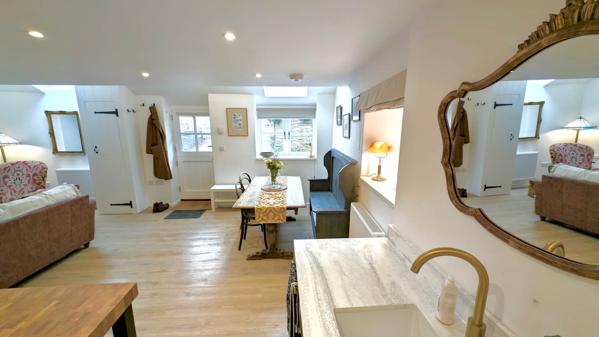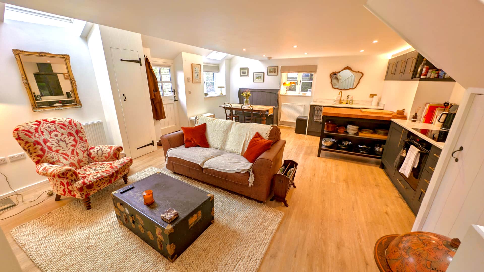Beautifully restored, the cottage seamlessly blends historic features with contemporary touches. Carefully chosen vintage pieces add warmth and personality throughout, with antique furniture, quirky collectibles and soft lighting creating a welcoming atmosphere. The cottage features one elegant bedroom with a super king-size bed for a restful night’s sleep, while the adjoining bathroom includes a luxurious bathtub, perfect for relaxing soaks after a day exploring the surrounding countryside.