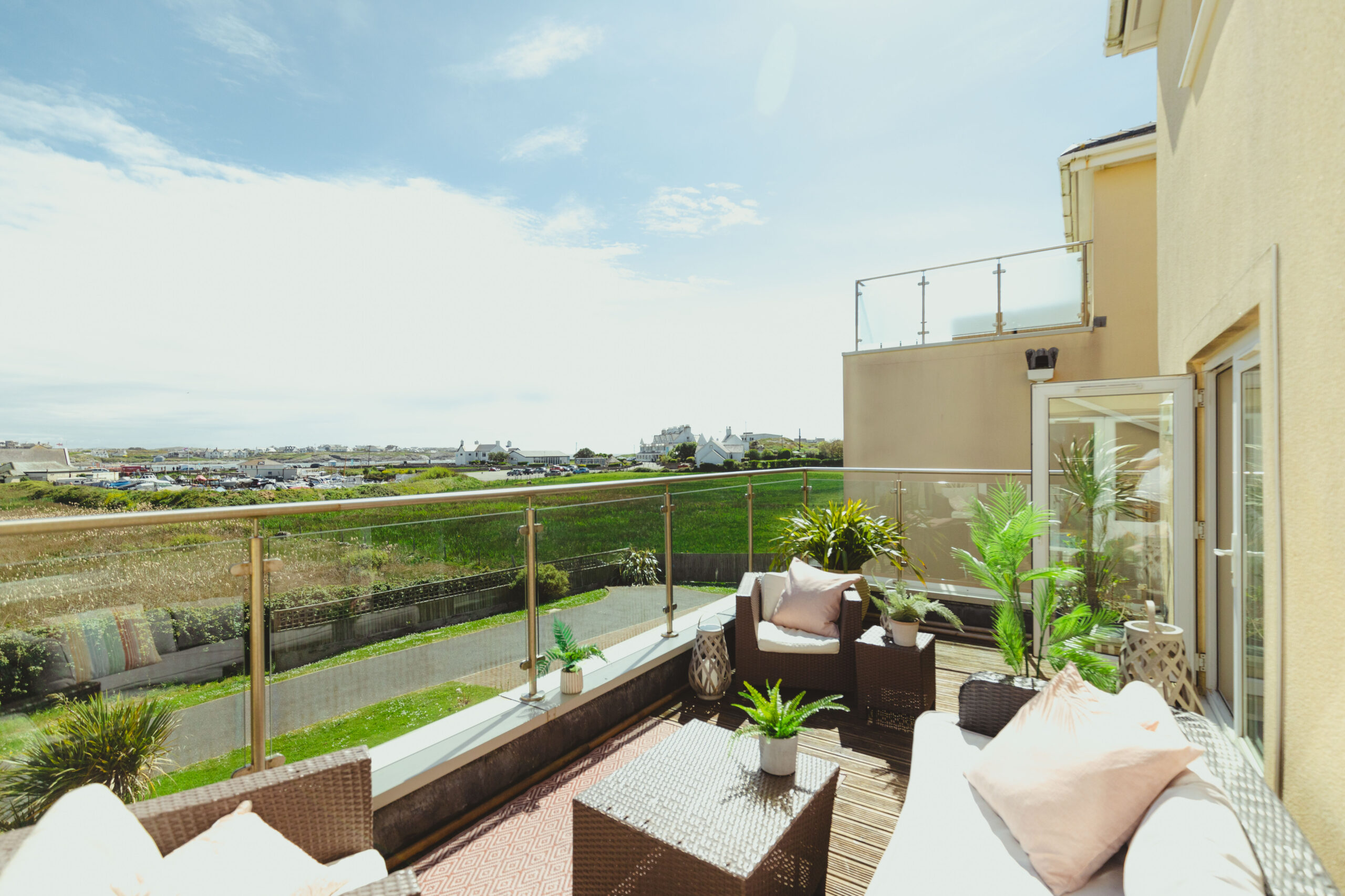 The Rise sleeps up to 12 guests, with additional space for two cots and offers generous accommodation designed for comfort and relaxation. This spacious coastal home features a private garden with a hot tub and BBQ patio area, a welcoming lounge, a well-equipped kitchen diner and the convenience of a washing machine and dishwasher. The master bedroom includes an en suite bathroom, dressing room and private patio, complemented by a separate family bathroom. Guests can also enjoy a games room and stunning views, all just a short distance from the beach and the beautiful coastline of Trearddur Bay.