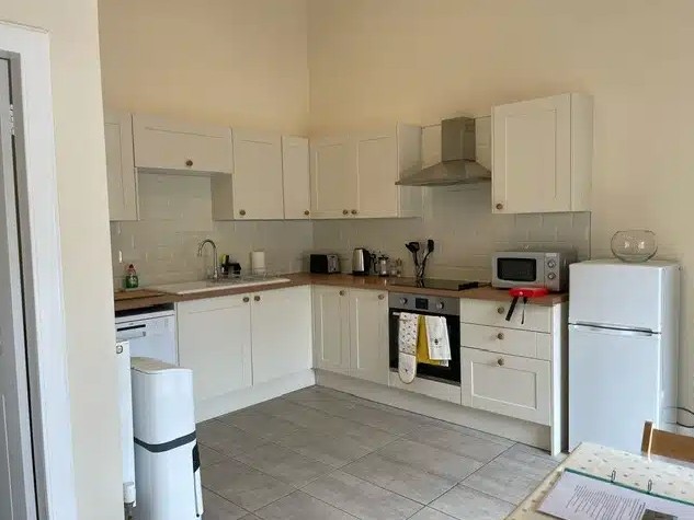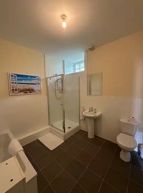 Guests can relax in the spacious sitting room, which features a sofa bed, log burner and Smart TV, while the well-equipped kitchen includes a cooker, dishwasher, fridge/freezer and microwave. A private washroom with washing machine and dryer is also available next door for added convenience.
