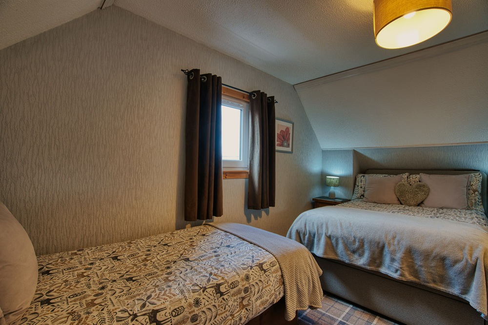 This self-catering apartment is attached to our guest house and benefits from its own private entrance, offering both independence and comfort. Upstairs, the bedroom provides one single bed and one double bed, making it ideal for families or small groups. Downstairs, the lounge includes a double sofa bed, creating additional flexible sleeping space.