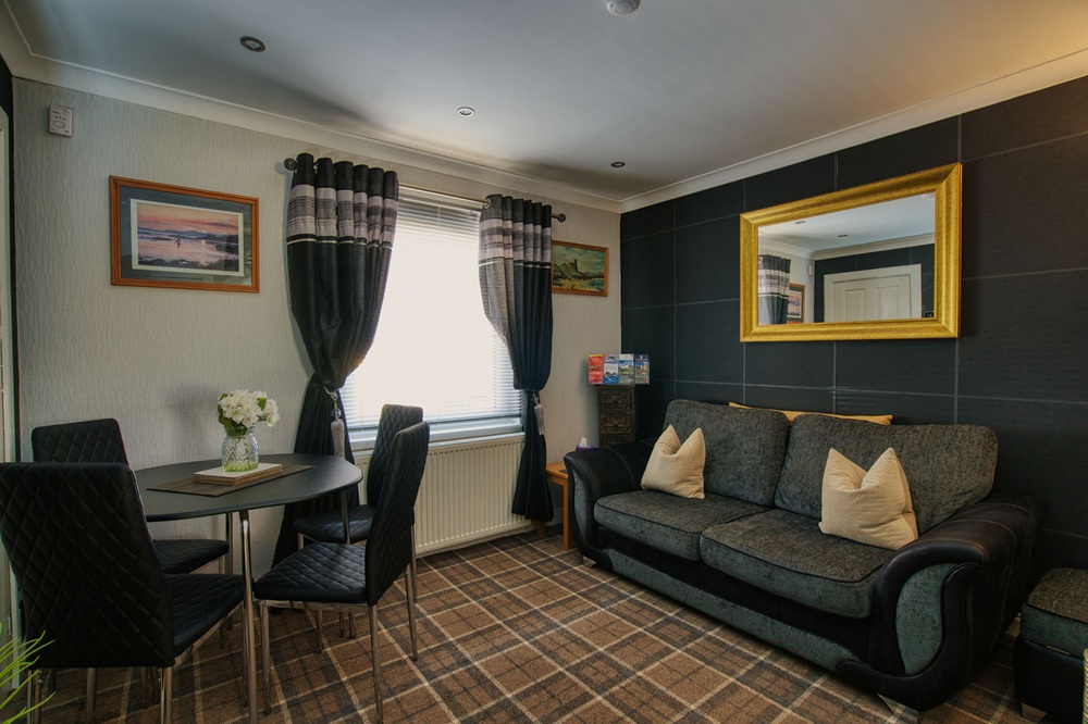 Guests can enjoy a range of thoughtful amenities designed to make their stay relaxing and convenient. The apartment includes tea and coffee-making facilities, a hairdryer, luxury towels and complimentary Wi-Fi throughout. There is a large Smart TV in the lounge as well as a Smart TV in the bedroom, allowing you to unwind with your favourite programmes after a day exploring the Highlands.