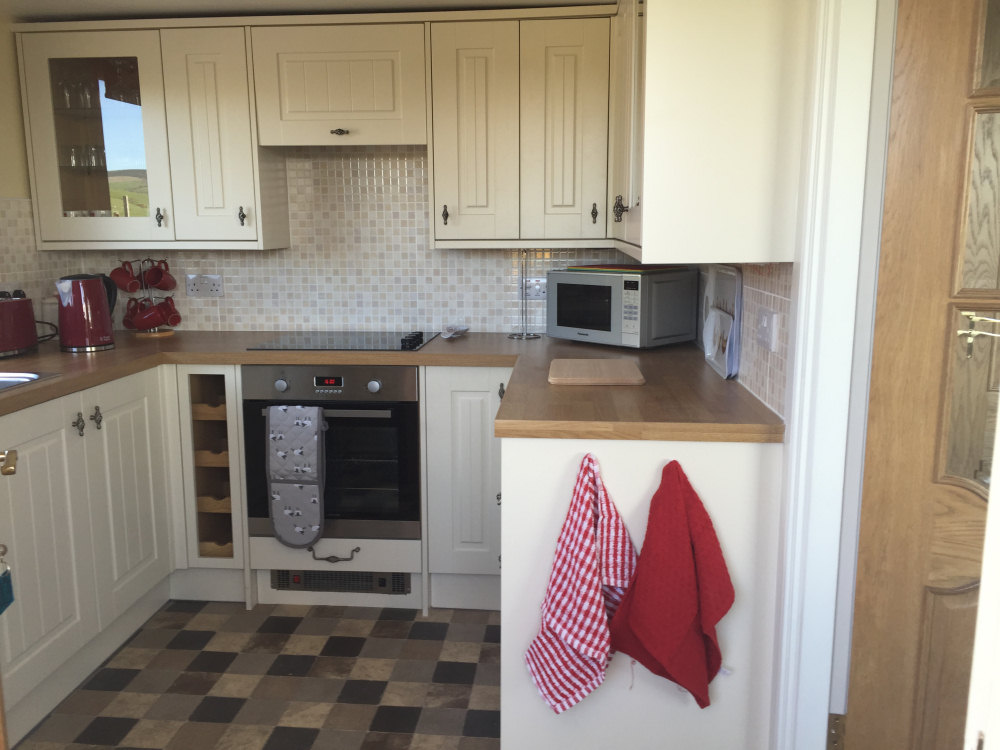 Recently fully renovated, the cottage features a new kitchen, bathroom, carpets, décor and furnishings throughout. The well-equipped kitchen includes a dishwasher and microwave, while a washing machine and tumble dryer are housed in the garage. The dining room offers a cosy wood burner with starter logs provided and a flat-screen TV, while the lounge features a 40-inch smart TV, DVD player, CD player and electric heating, along with views across the Irish Sea and over Southend. The property has three bedrooms comprising one king, one double and one single, sleeping up to five adults, with a travel cot available if required. The bathroom includes both a walk-in shower and a bath with shower over and all electricity is included in the price.