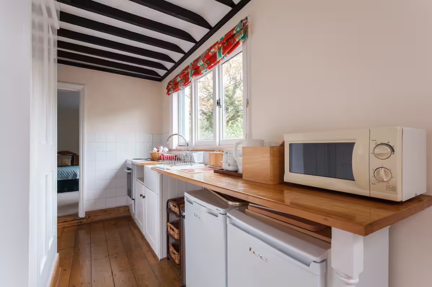 Staying in Boldre in the New Forest offers a peaceful escape surrounded by natural beauty. Wild ponies roam freely across the open heath, ancient trees tower overhead and in late summer the landscape glows with purple heather. Quiet country lanes are ideal for walking and cycling, with chances to spot deer among the trees. Perfectly located for exploring, the studio is just five minutes from two excellent pubs and around ten minutes on foot from a well-stocked village shop. Nearby attractions include Lyndhurst, the Beaulieu Motor Museum, and Buckler’s Hard, as well as the Solent coast with boat trips to the Isle of Wight and the beaches of Highcliffe, Bournemouth and Poole. Although local bus services are limited, excellent train connections from nearby Lymington and Brockenhurst make it easy to discover the wider region.