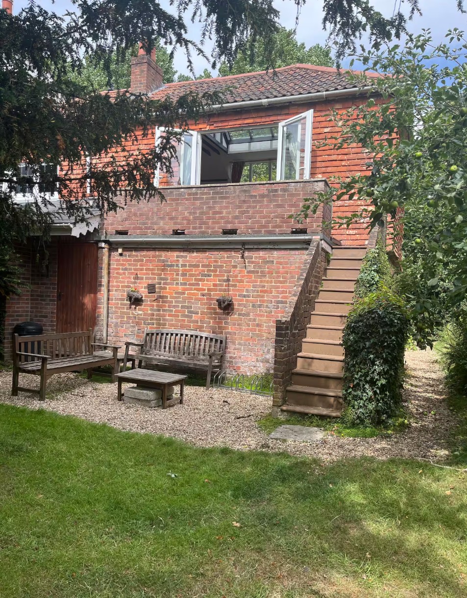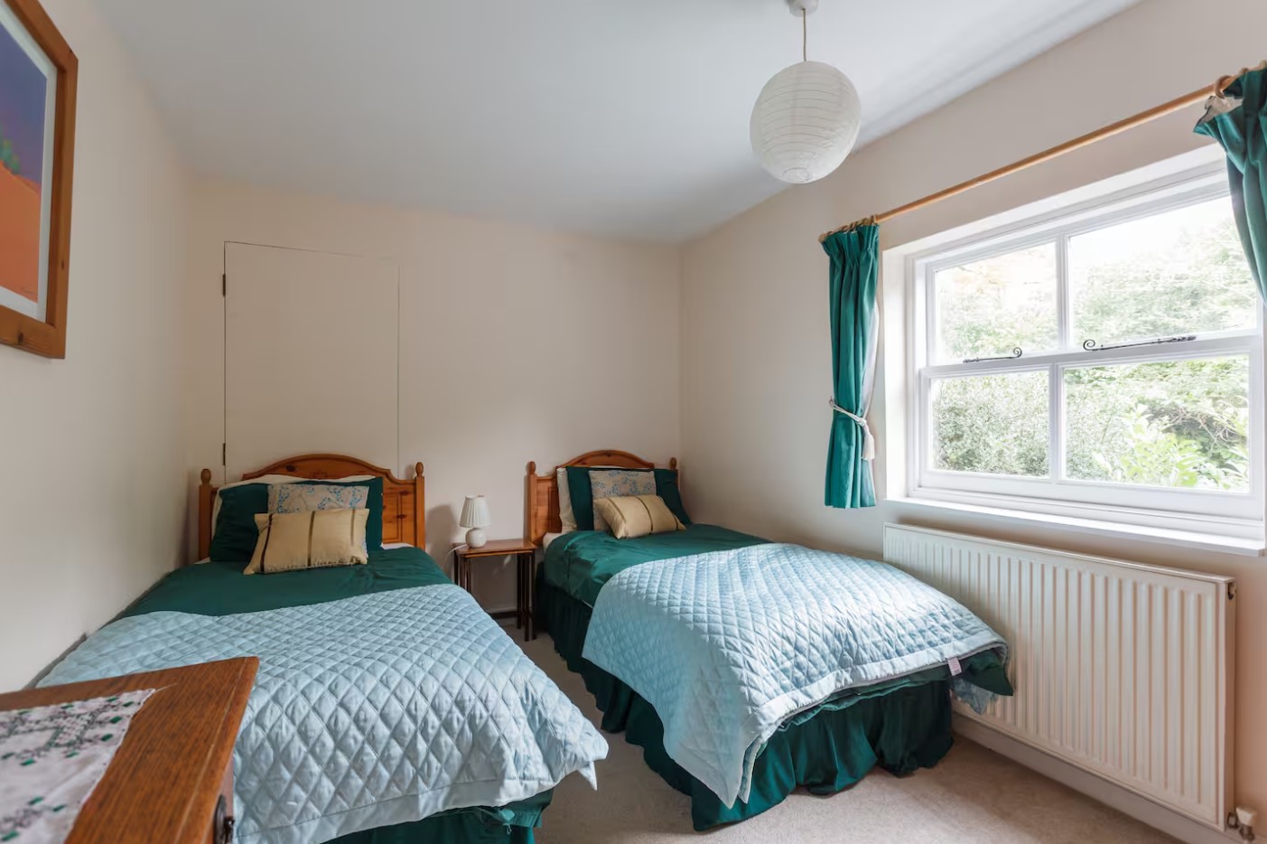 The apartment has its own garden with seating and parking for two cars, there is also bike storage available for 5 bikes. Tea, coffee, milk and a small welcome pack are provided on arrival and the wood burner is available from October to March, with an initial supply of logs included. EV charging is available using a domestic three-pin plug from the kitchen and a shared washing machine can be accessed from the guest garden. Please note that beds are prepared according to the number of guests booked, so any specific room requests should be made in advance.