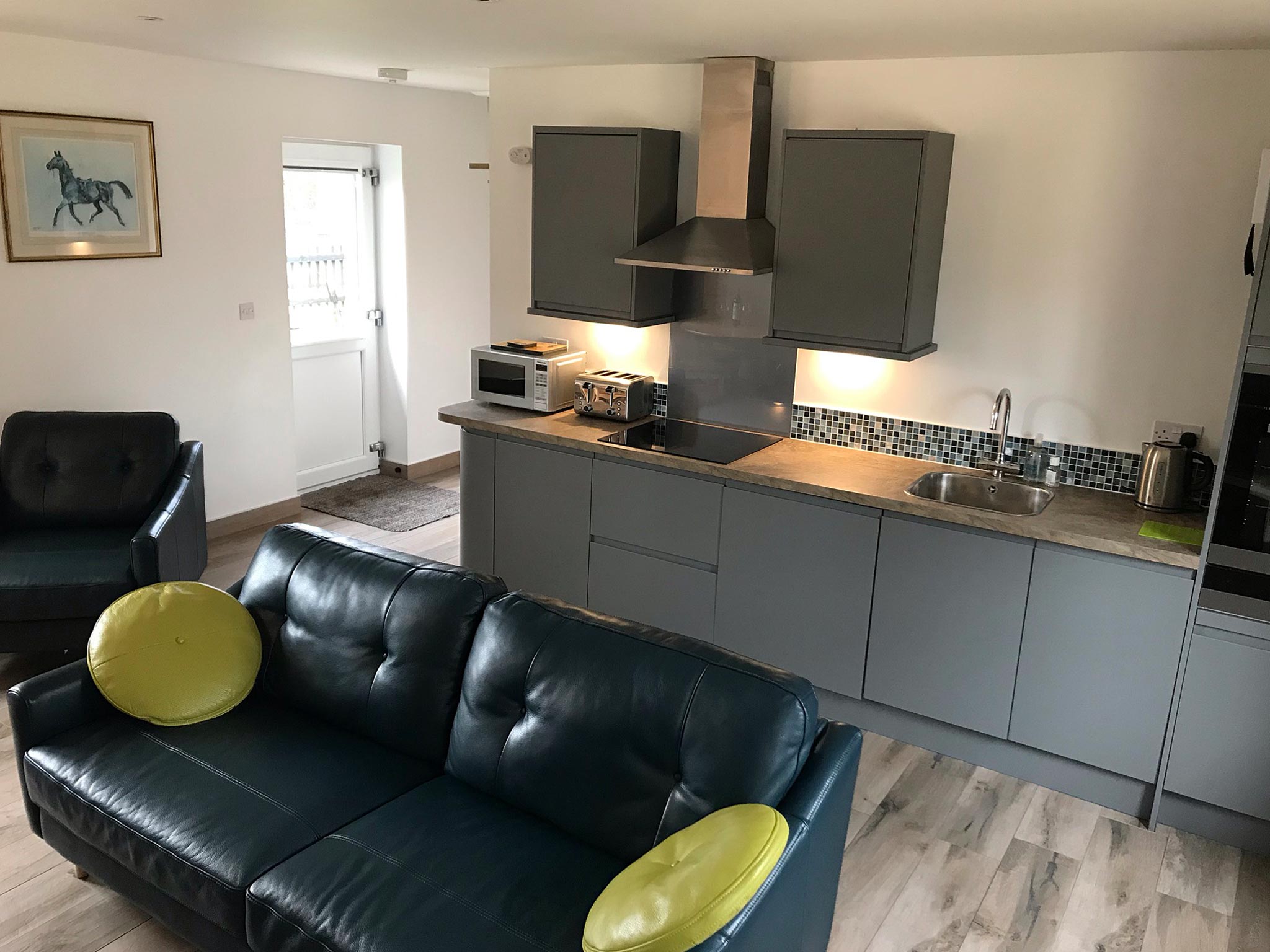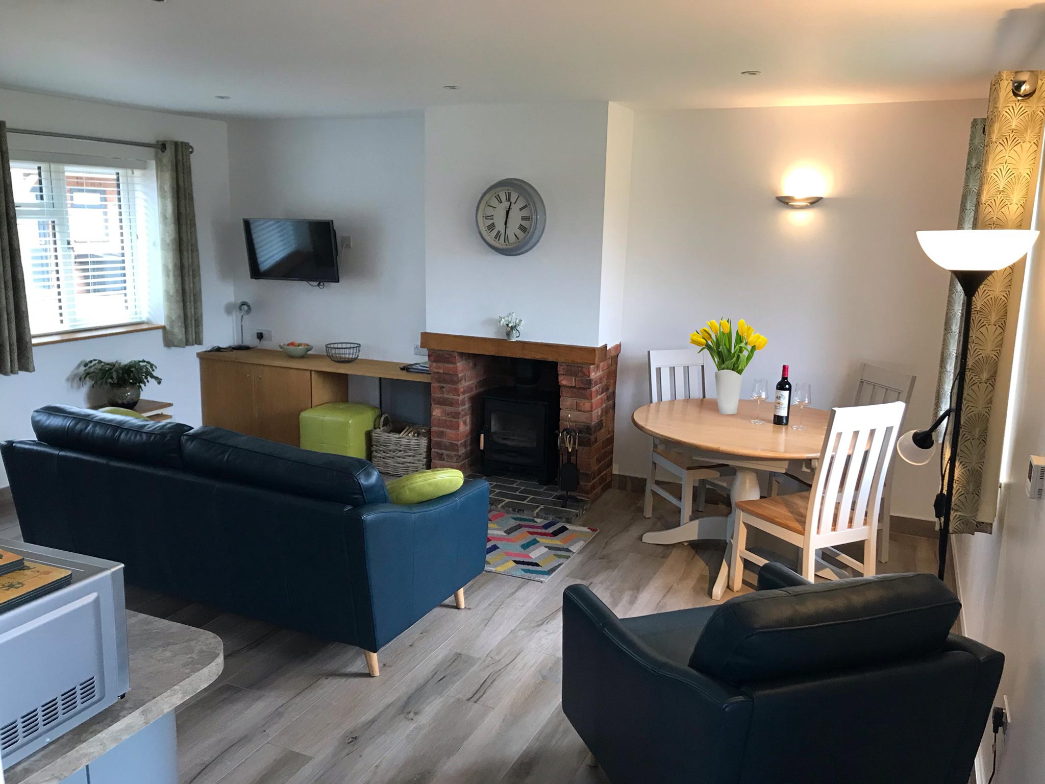 Courtyard Cottage is a stylish single-storey retreat designed for comfort and practicality. The modern bar-style kitchen is fully equipped with an electric oven, halogen hob, dishwasher and microwave, providing everything needed for easy self-catering. A separate lounge offers a relaxing space to unwind, complete with Freeview TV, DVD player, USB charging points, a cosy wood-burning stove and luxurious leather sofa and chairs. The cottage features two well-appointed bedrooms, one with twin beds and the other with a Super King-size Hypnos bed, offering flexible accommodation for families or friends. A contemporary bathroom with a spacious walk-in shower and WC completes the layout, creating a comfortable and welcoming countryside escape.