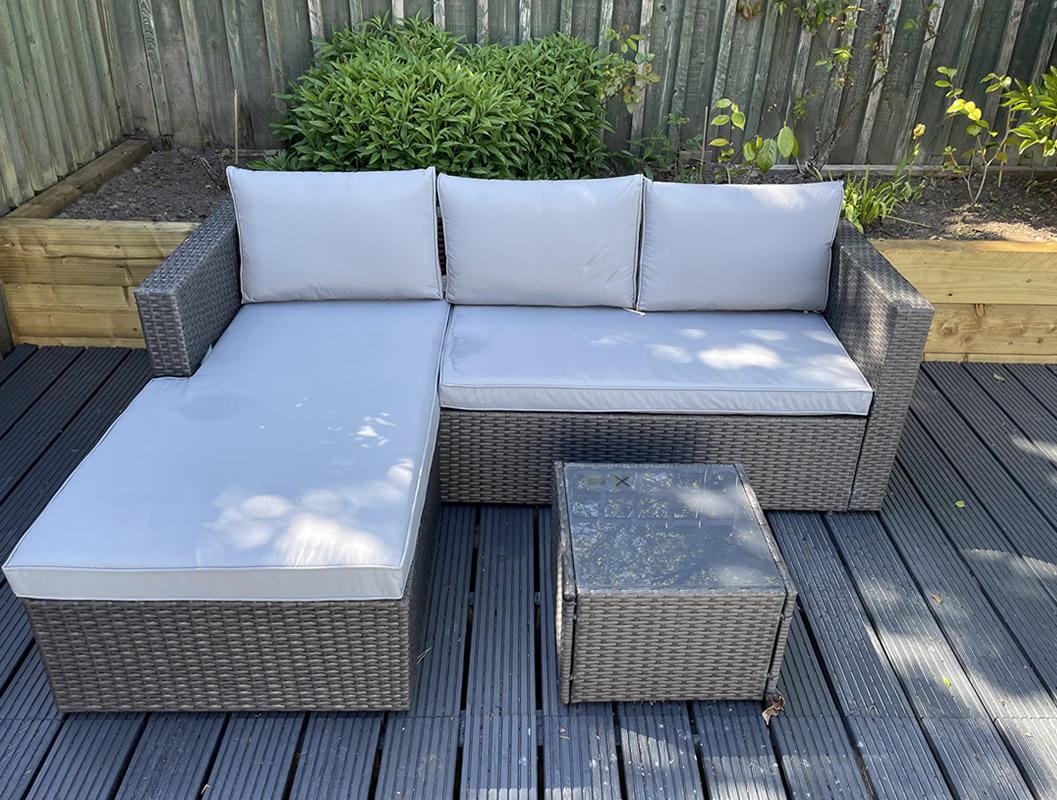 French doors open out onto a wooden decked patio with a decorative balustrade, leading down to a well-established rear garden where guests can unwind. Parking is available within the grounds and visitors are welcome to enjoy the surrounding garden areas, including a barbecue space, additional outdoor storage and a summer house.