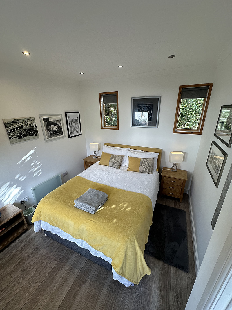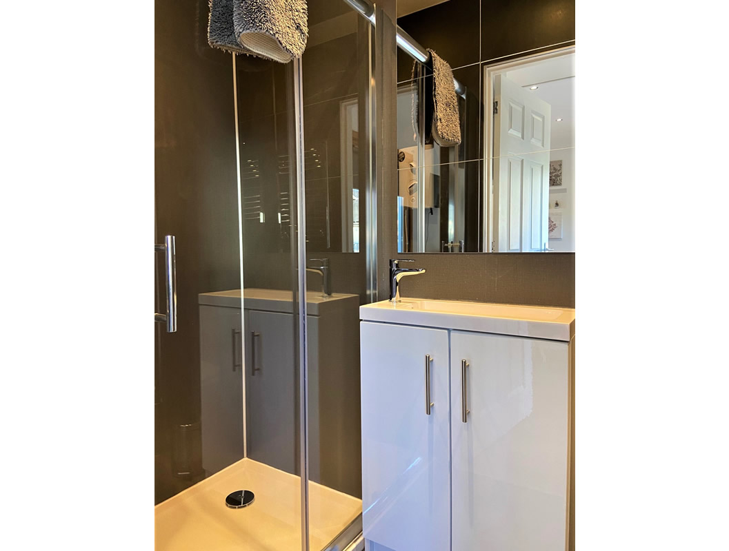 The accommodation is completed by a double bedroom and a contemporary shower room fitted with a WC, wash basin and a glazed shower enclosure with an electric shower, as well as a wall-mounted chrome electric radiator for added comfort.