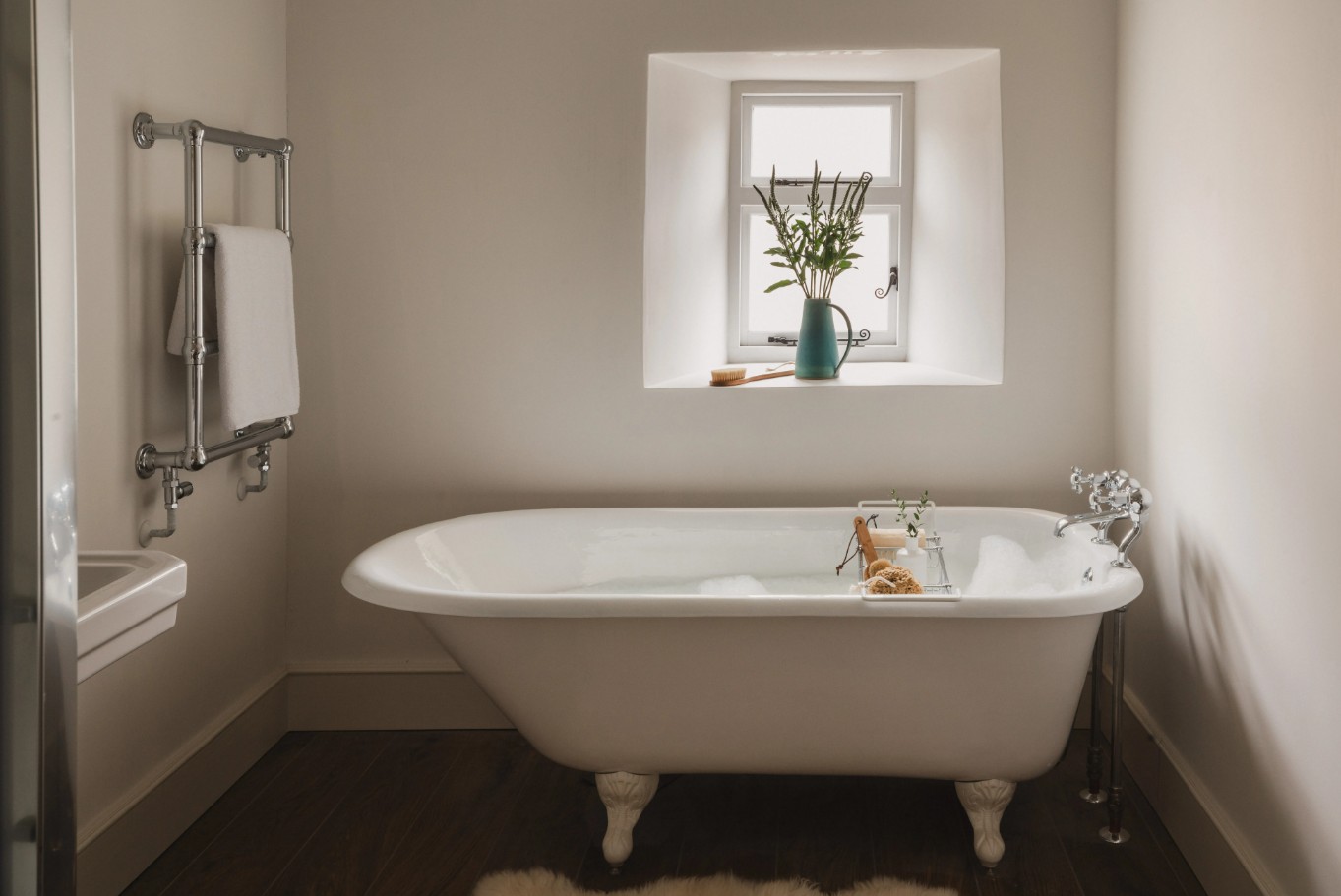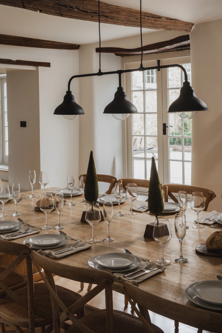 Guests can enjoy meals either at the large indoor dining table or outside in the garden, where a charming seating area and lawn games such as croquet add to the experience. The house features five comfortable bedrooms, including four king-size rooms and one double, along with four well-appointed bathrooms, one of which includes a classic cast-iron bathtub, ensuring a restful and enjoyable stay.