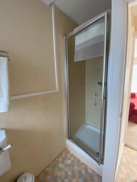 The shower room includes a glass-fronted shower cubicle, wash basin and toilet, along with a shaver point. Towels are provided, although guests are asked to bring their own beach towels. The apartment benefits from full gas central heating and constant hot water, with thermostatic controls throughout and no additional charges for gas or electricity.