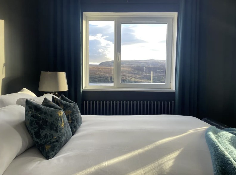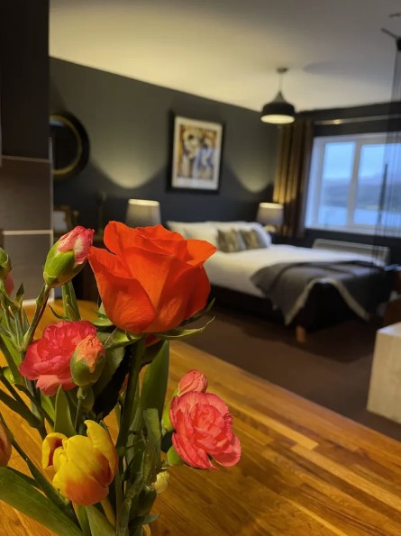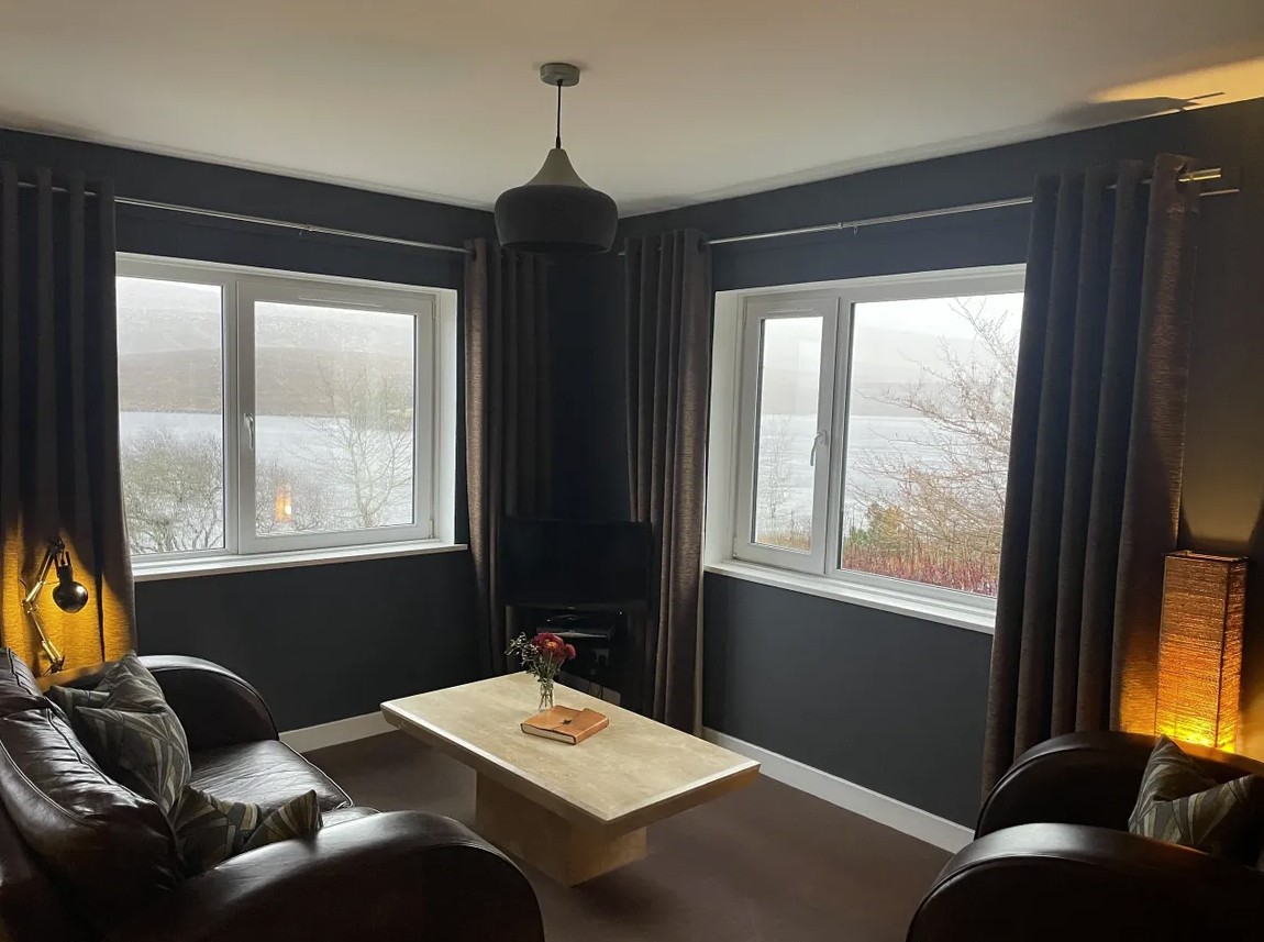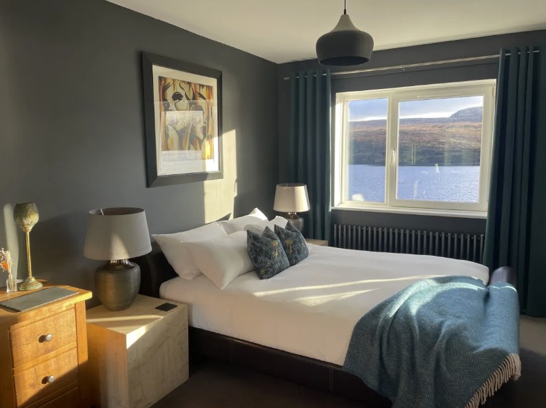 Fada Apartment is located on the first floor and enjoys breathtaking panoramic views over Loch Fada, creating a truly memorable setting. Designed in a stylish, contemporary boutique style, the apartment features a fully equipped kitchen and a range of modern amenities, including a washing machine, tumble dryer, dishwasher and all essential detergents for a convenient stay. Guests can unwind with smart TVs offering streaming services, along with free WiFi and Alexa speakers for added comfort and entertainment. The king-size bed is finished with luxurious Hungarian goose down bedding and on arrival, guests are welcomed with thoughtful extras such as tea, coffee, sugar, milk and a small Scottish treat.