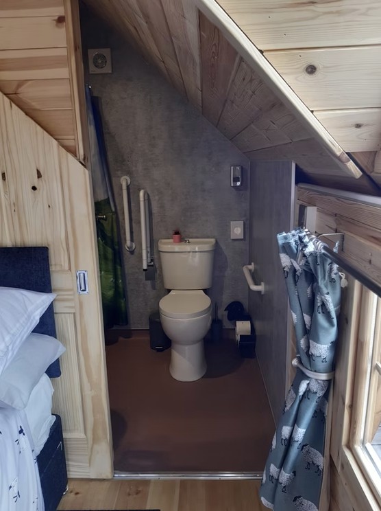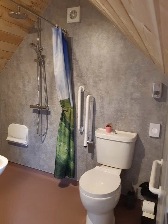 The cabin accommodation is entirely step free and has been thoughtfully designed with wheelchair users in mind. The wet room is fully accessible, featuring grab handles and ample floor space for ease of movement. Parking is located directly next to the cabin, allowing smooth access with no steps between the vehicle and the entrance. The outdoor decking area is also level throughout, ensuring easy and comfortable access.