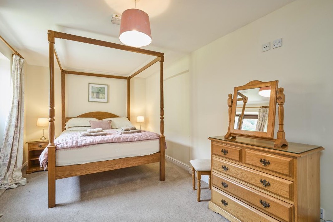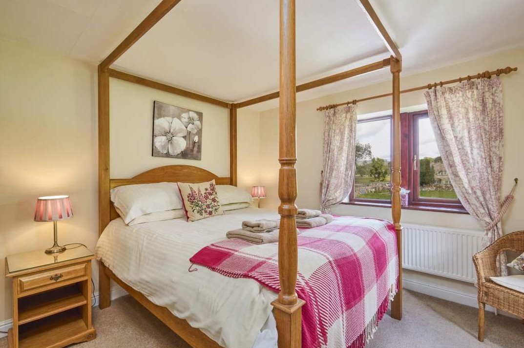 All bedrooms at Littondale Cottage are en-suite, featuring either baths with overhead showers or walk-in showers. There are three bedrooms on the ground floor, including an impressive king-sized oak four-poster room, a double room and a spacious twin room.