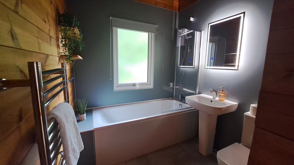 The lodges provide a living room with dining area and 40” TV. A separate, fully equipped kitchen comes with a dishwasher. Three bedrooms comprising of a double, twin and bunk room. The bedrooms share a family bathroom.
