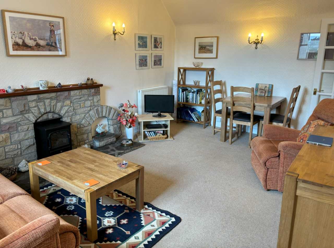 The apartment is comfortably furnished and thoughtfully equipped, offering a bright and airy interior with central heating throughout and an attractive, elongated entrance hall. The generous sitting and dining room provides a relaxing space, complete with a feature fireplace, TV, DVD player and free WiFi. A separate kitchen includes everything needed for a self-catering stay, such as a cooker, microwave, fridge, dishwasher, kettle, toaster and iron, along with ample storage space. The large bedroom features a king-size bed, a hairdryer and plenty of wardrobe and drawer space, while a shower room completes the accommodation. Bed linen and towels are provided and additional amenities such as a cot for infants and a comfortable folding bed are also available.
